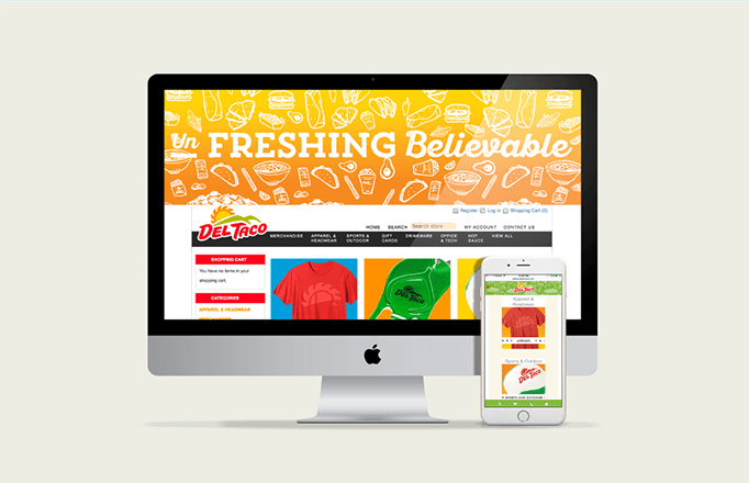 Client Del Taco:. Leveraging our success with Taco Bell we approached rival Del Taco with a similar proposition. In the middle of a rebrand and looking to expand their presence, Del Taco jumped at the fit. Again, working with limited resources we created a simple to use web portal that would work as a customer facing website with an easy to use franchisee aspect. Staying true to their brand energy we skinned a pre-existing site and worked with their in house team to create a site that would fit seamlessly with our chosen distributer.