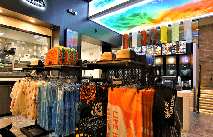 Once the web aspect was done we turned our focus to creating merchandise and apparel for their online store. With a small team we were able to create 100’s of cohesive on brand products and apparel items for sale. Our retro Taco Bell sweatshirt sold 50k units in 1 day after partnering with their social team.